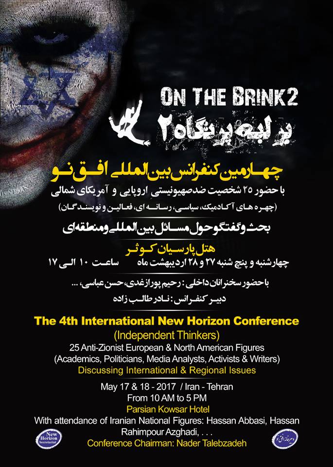 An international gathering of mainly Iranian and Italian antisemitic fascists opened in the Iranian capital Tehran on 17 May under the title “On the brink 2”. The Iranian news agency Tasmin described it as a “New Horizon Conference” and claimed it was focusing on human rights issues.