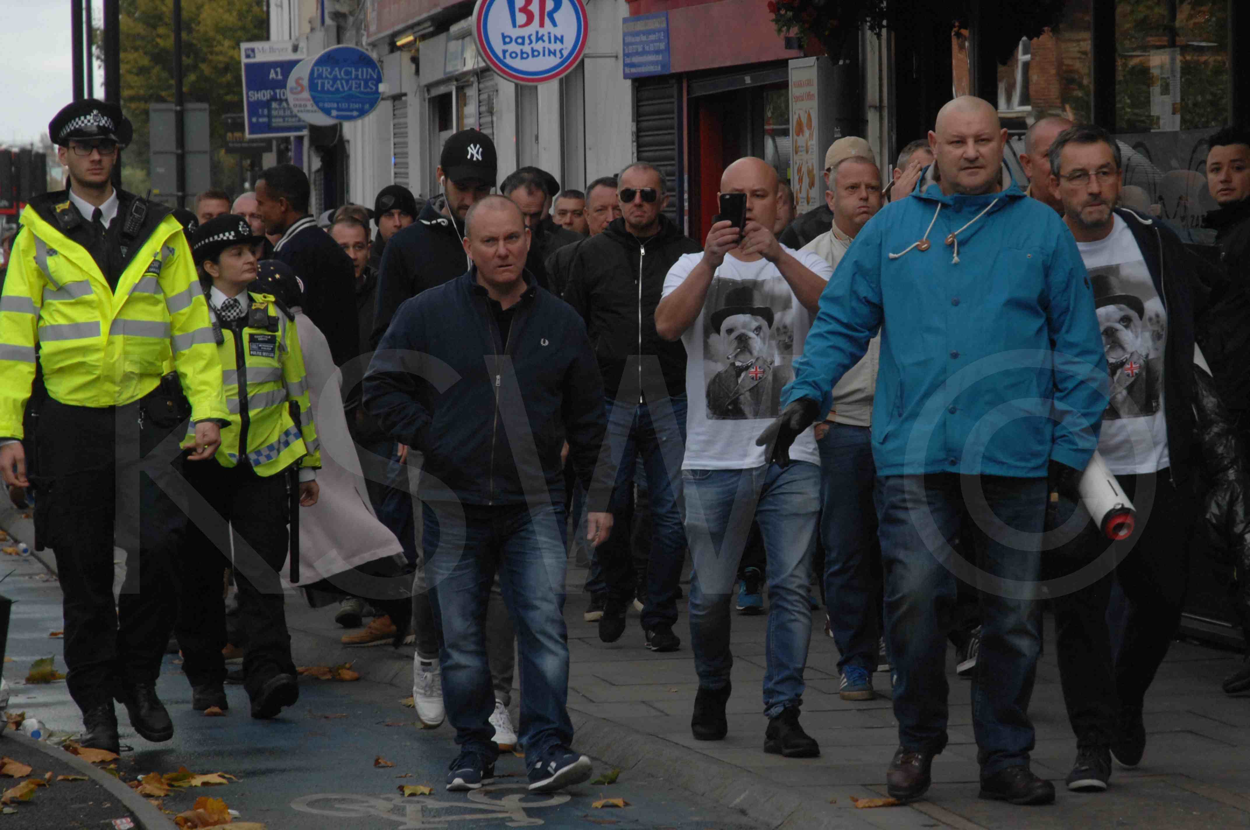 Around 50 members of the notorious football hooligan gang the Chelsea Headhunters and a few other thugs were facilitated by police to walk close to the East London Mosque. They claim to be part of the Chelsea FLA.