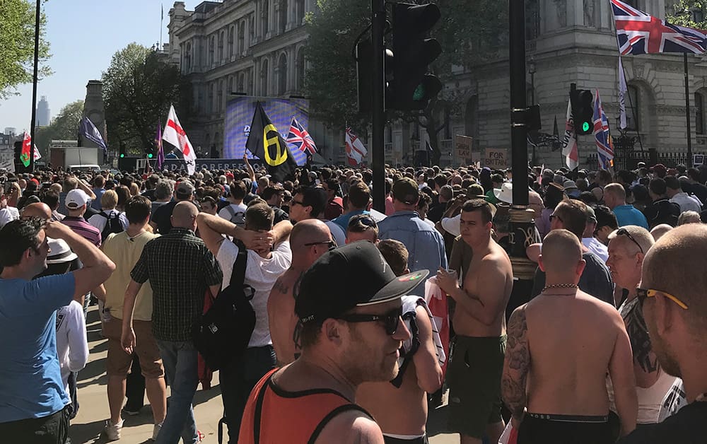 Thousands of racists, far right activists and fascists marched through central London and staged a festival of hate outside Downing Street on Sunday 6 May. We want to set this event in a wider context – it illustrates how the far right is operating today and how it is drawing on trends across Europe and America. It marks a new departure even from previous mobilisations by Tommy Robinson and the Football Lads Alliance.
