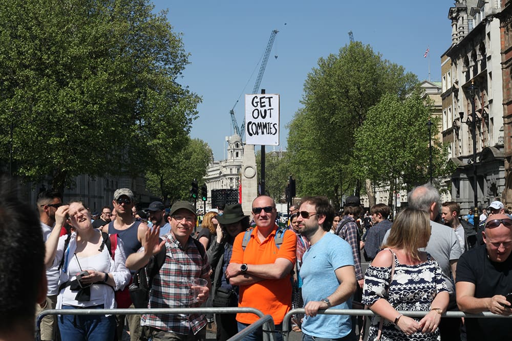 Precise numbers were hard to gauge – many of those of the DFLA feeder march did not go all the way to the rally, with large numbers preferring to go to the pub instead. At Whitehall, it was clear a different broader crowd had come directly to the rally, and large groups continued to arrive throughout the more than three-hour event.