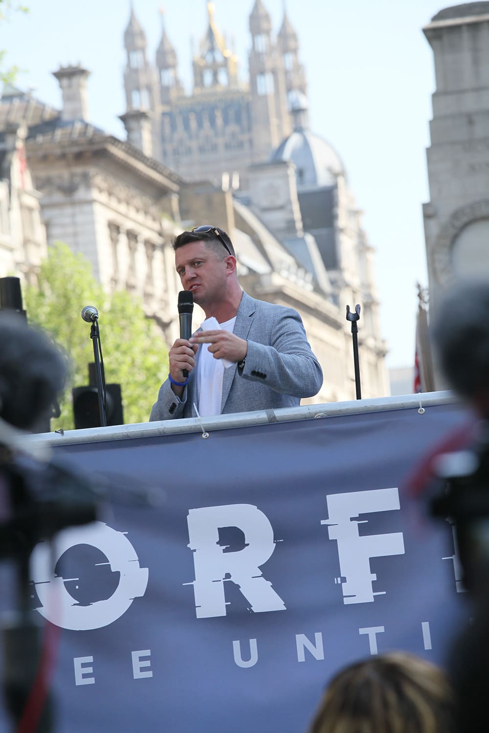 Introduced with a musical fanfare, Tommy Robinson was the final speaker of the day. It was self-congratulatory, anti-elite and anti-Muslim rant. But he did provide antiracists with one important insight. At one point in his speech he said: