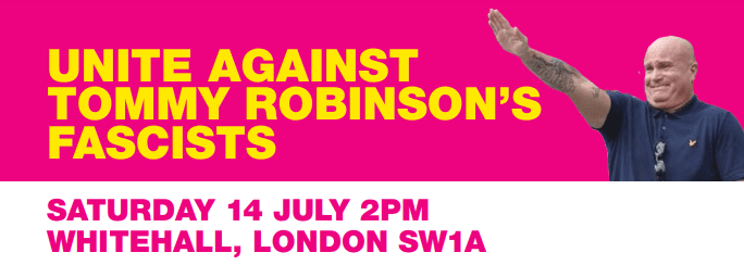 On 14 July anti-racists from across the UK will gather in London to oppose the supporters of Tommy Robinson, Stand Up To Racism writes. Find the Facebook event here.