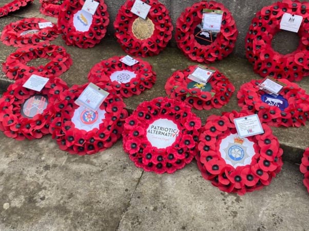 Railing against Tommy Robinson’s call out to the football firm troops at the weekend as a ‘Zionist trap’, Patriotic Alternative, the neo fascist group run by Mark Collett, Sam Melia and Laura Towler, gleefully posted pictures of their activists besmirching the memories of the millions who died fighting fascism.