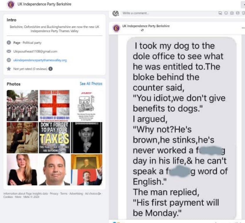 Here’s another from the G.Glitter UKIP Berkshire facebook page, posted on 30 April 2023 –