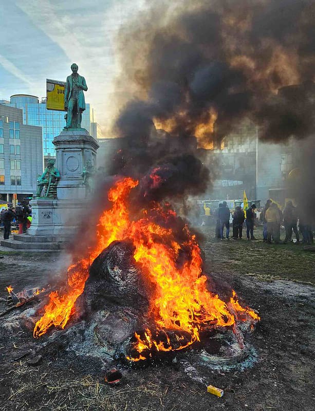 Protestors blockade Brussels and set fires (Feb 2024) Photo: Matthias Berg/EPP Group