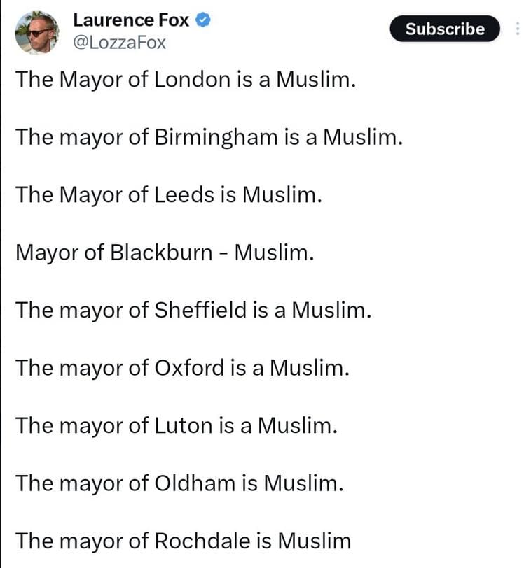 You see, as far as we know, four of the eight ceremonial mayors that he points the finger at aren’t Muslims at all. Oops!