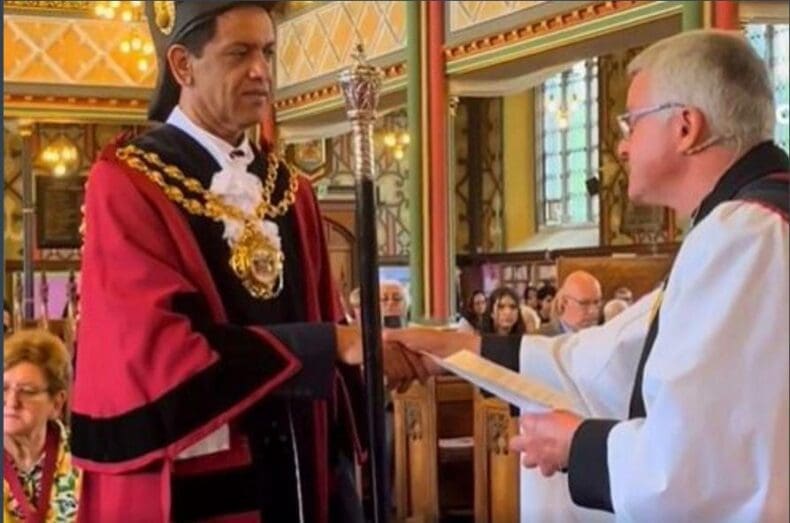 Zahid Chauhan, Mayor of Oldham. A Muslim but also a warden of Oldham Parish Church – the venue where he chose to be sworn in as Mayor, as seen here.