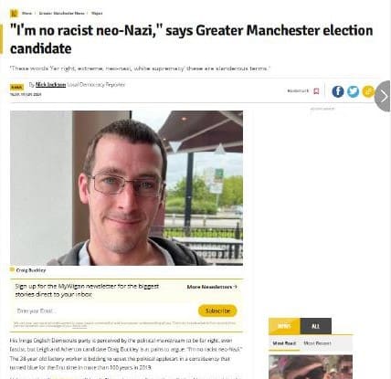 A few weeks ago, two new versions of Craig Buckley were presented to voters. The UKIP Buckley was long gone, and the PA nazi Buckley remained in the shadows. For the General Election there was a brand new “English Democrat” Craig Buckley, but in a simultaneous local council by-election for Leigh South the same day there is an independent Craig Buckley.