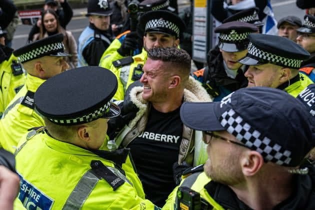 Tommy Robinson was arrested yesterday morning and charged with an offence under the Terrorism Act 2000.