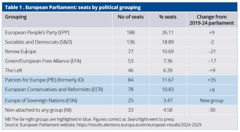 This article originally appeared here on 14 June. It has been updated to include the far right realignments in the European Parliament following the elections. It also appears in the Summer 2024 issue of Searchlight,