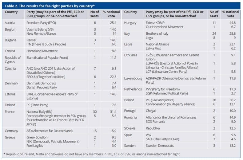 There were some setbacks for the far right, most notably the decline in support for Fidesz, the Czech Civic Democratic Party and Matteo Salvini’s Lega per Salvini Premier (LSP) in Italy. Despite these setbacks across much of Europe, the far right is in the ascendancy.