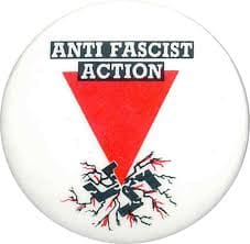 It wasn’t only in Germany that the red triangle was an anti-fascist symbol. It was also an anti-fascist symbol in Britain. Anti-Fascist Action used the symbol in the 1980s with the red triangle piercing a swastika (right).