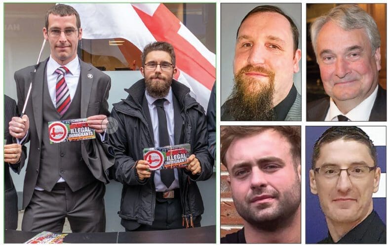 Several of the old guard congregate in the British Democratic Party (BDP), a party that slowly developed out of the BNP’s collapse in the early 2010s. Some of its leading figures, such as former BNP councillor Jim Lewthwaite (below, right) and former NF chairman and BNP MEP Andrew Brons (below, top), have roots in “old school” fascism and are friendly with the nazi “intellectual” journal Heritage & Destiny, while others try to position the BDP as the populist voice of “white van man” in Kent and Essex.