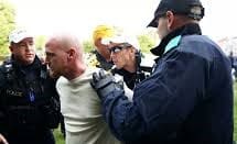 Dropping to floor level and screaming at the dog was merely the most bizarre part of McCarthy’s behaviour. He had already been arrested once that day, but instead of taking this as a warning to clear off home, he returned to the scene and threatened counter-protestors, used racist slurs and goaded the police.