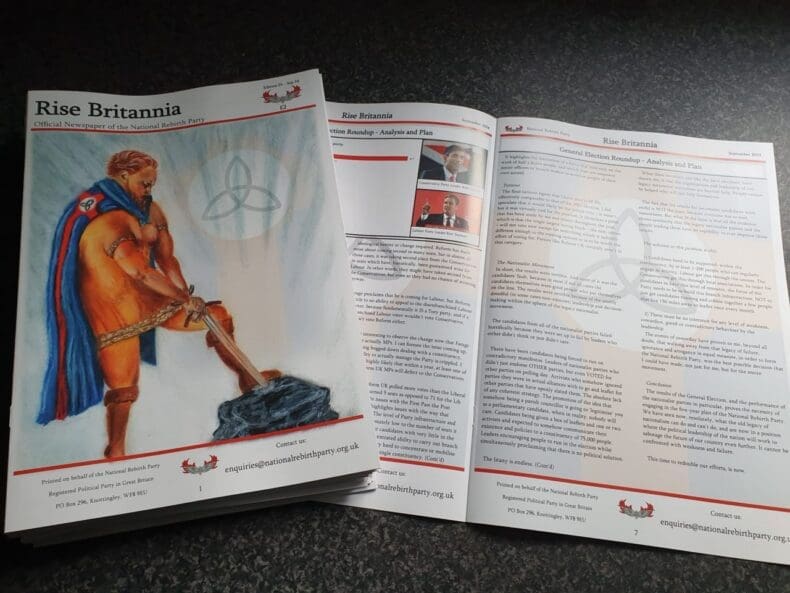 National Rebirth Party leader Alek Yerbury has offered up a taster of the Rise Britannia magazine that he is launching next month. Issue 1’s cover looks a real treat. A fat man with almost non-existent calves (hidden by brown football socks) and wearing a shonky shop plush superhero cape and a tantalising see-thru baby doll nightie. Barf!