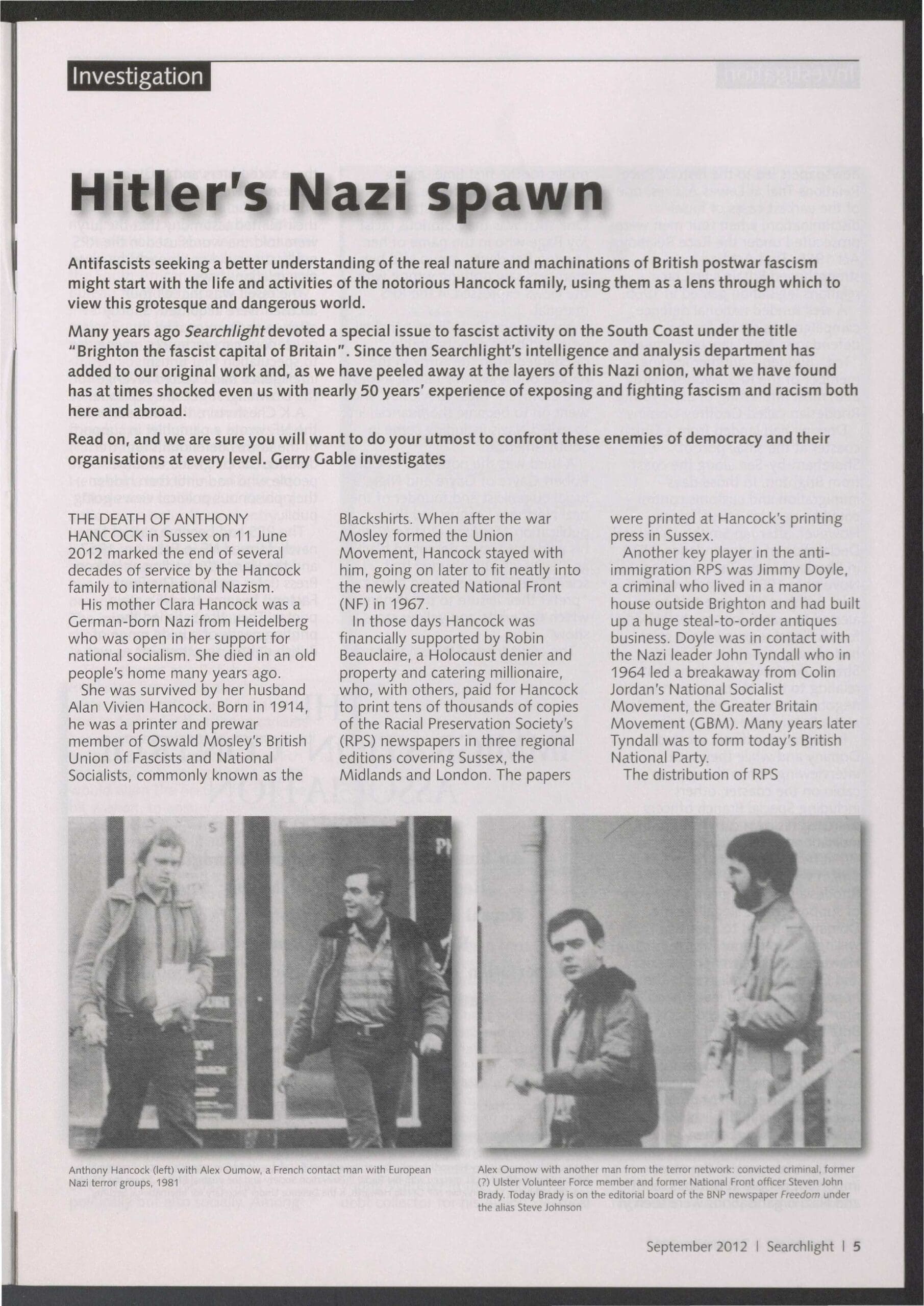 He was also the first point of contact for the fugitive Italian terrorists led by Roberto Fiore who arrived in the UK after the Bologna bombing of 1980. It was Hancock who first received them in Brighton and shipped them on to League of St George contacts in London who looked after them.