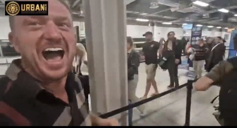 Filmed relaxed and laughing (see picture) in the passport queue at Luton he actually says at one point “I ain’t getting nicked”. And his tweeted ‘surprise’ at not being held was accompanied, of course, by an immediate appeal for money for his nasal …sorry ‘legal fund’.