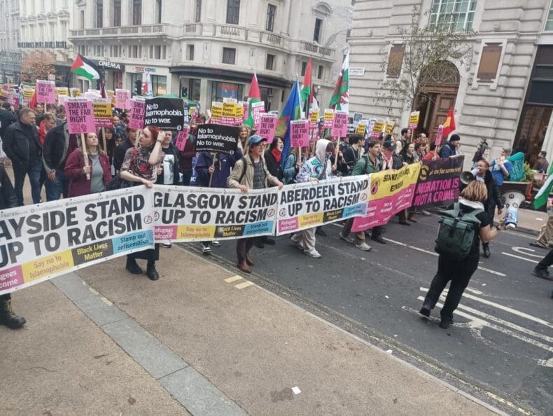 One of the most imprssive aspects of the huge counter demonstration called by Stand Up To Racism, was the presence of thousands of trade unionists with their banners. The trade union movement really pulled out the stops for this, and it was a heartwarming sight.