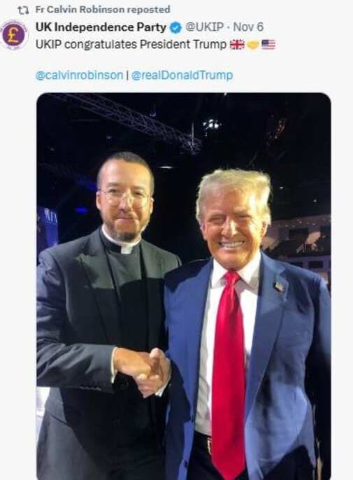 Nigel Farage has, predictably, been basking in his purported friendship with Donald Trump ever since the disastrous Presidential election result was announced last week. But he’s not the only one. Also posting pictures of himself with the great sex offender is the UK’s far right ‘batshit preacher’, Calvin Robinson, who recently decamped to the US to minister to a new flock in West Michigan. He even managed to inveigle himself into Trump circles and address a Trump rally only days before the poll, meeting Trump in the process.