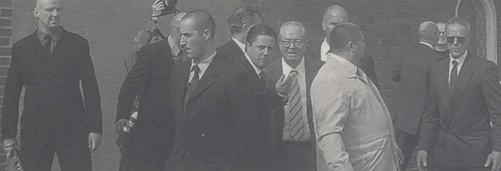 It was Griffin who was the first British political leader to welcome Le Pen to the UK in April 2004 (below). His security team included Merseyside gangster Joe Owens and Glaswegian Combat 18 thug Steve Cartwright.