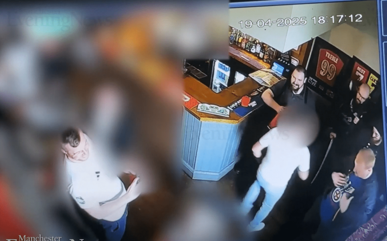 It happened in the Duke of Edinburgh pub in Oldham and the pub management were so upset at the incident they reported to the police they next day. Now they have given the CCTV footage to the MEN.