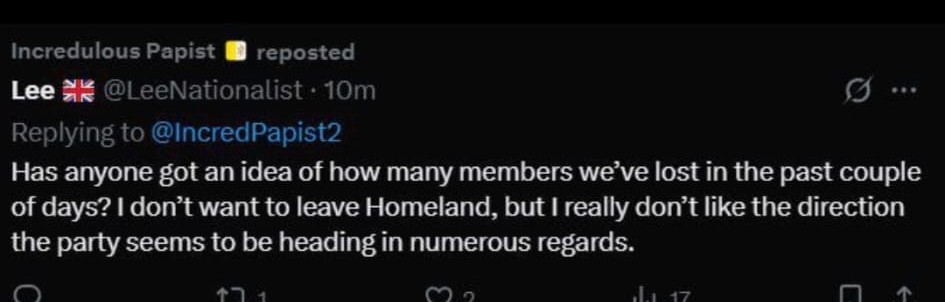 Steve Laws, the anti-immigration video blogger who has radicalised into the leader of Homeland’s hardline fascist faction, posted on X: “The recent decisions were nothing to do with me to be clear and neither is it something I agree with.”