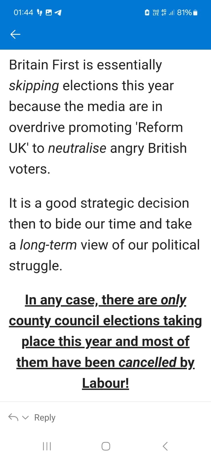 Even now, after months of much-hyped growth mainly at PA’s expense, but also some from Britain First and a few of Reform’s most extreme racists, Homeland has only been able to manage four candidates, but even this is by far the biggest electoral effort in their short history.