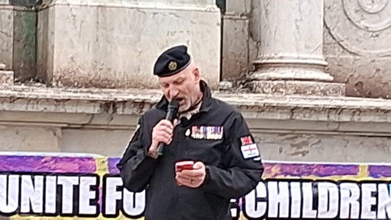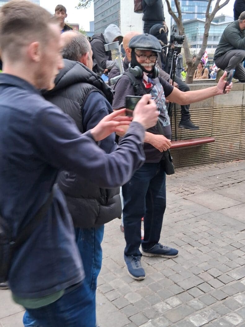 Claiming to be here “only here for the kids” his speech was the catalyst for a small group of racist thugs, identified as football hooligans from Rangers and West Ham United, supposedly acting as “security”, shouting “paedos” at a small group of young men and their children who they believed,were Muslims.