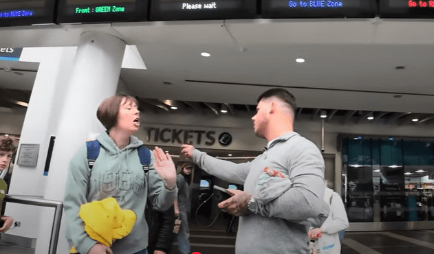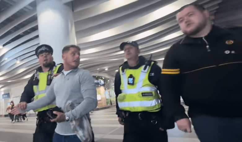 When Ferguson arrived at New St station he was accompanied by two friends, one of whom was filming “to document your day, Ryan”. In the station concourse they came across a lone anti-fascist protester carrying a placard and Ferguson immediately started an argument.