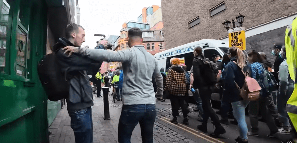 From New St he walked towards the anti-fascist assembly point and in the video it’s clear that this is intended to provoke a reaction that they could film.