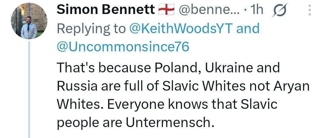 The problem? A post on X describing Slavic people as “untermensch”.