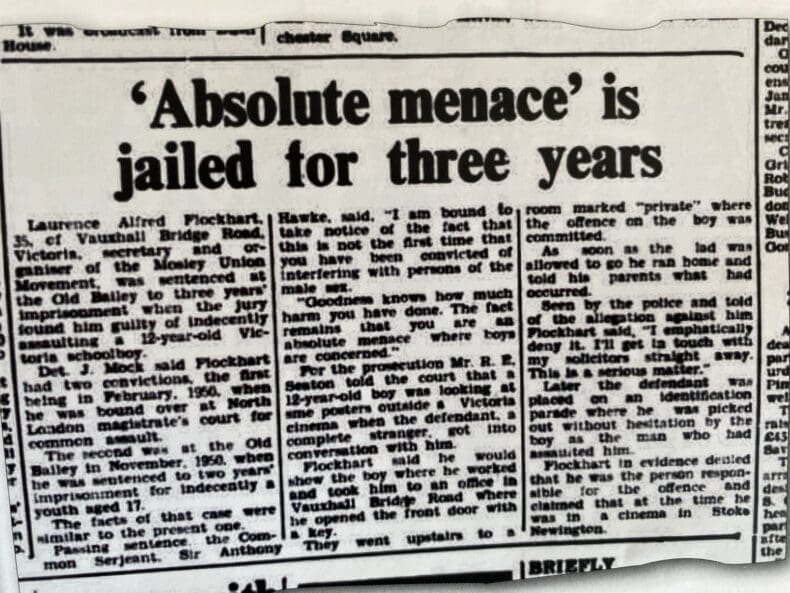 A few months later, however, Flockhart was welcomed back by Mosley into the Union Movement fold. And where he went, Peter went as well. For the next two years peter was groomed and sexually abused by Alf Flockhart