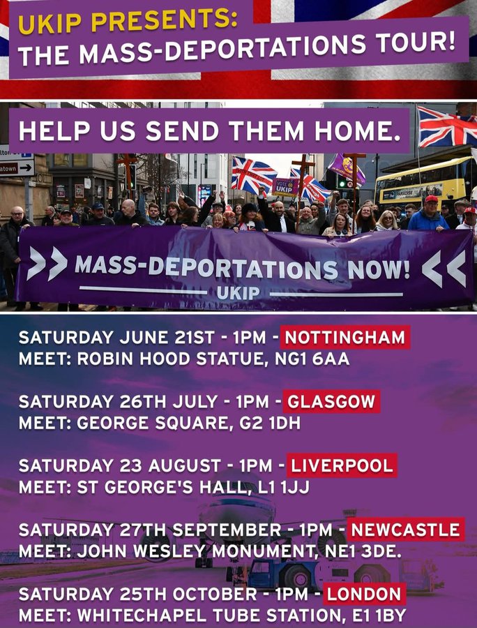 The latest list of UKIP demonstrations demanding ‘mass deportations now’ contains few surprises. Most are city centre events which will be healthily outnumbered by anti-fascists in town and cities with proud anti-fascist traditions. Except one.