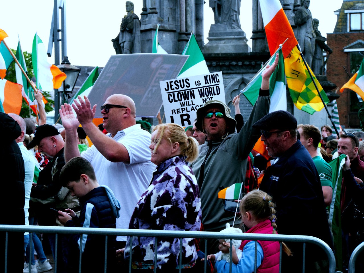 The anti-immigration agitators in Cork were met by a larger counter-protest of roughly 2,500 people consisting of anti-racists, pro-Palestine activists, and representatives of various unions.