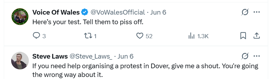 Dover-based fascist activist Steve Laws, who recently quit Homeland in favour of a more hard-line approach to remigration, has told Donaldson he is going about it the wrong way, while the UKIP-supporting Voice of Wales have urged him to defy the council and go ahead anyway.