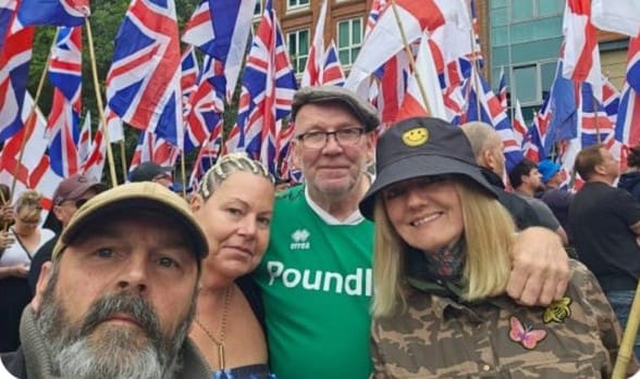 The mystery fascist turns out to be Melanie Powell from Walsall – hence the Walsall FC football top on her companion.