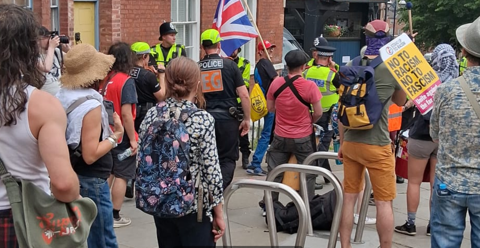 Local football hooligans from the Notts County side tried and failed to infiltrate the anti-fascist ranks. Humiliation. These “lefty wimps” are, it turns out, not that wimpy at all.