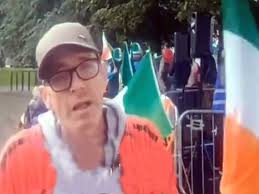 Eric English of Waterford Says No called on the crowd to get active in their communities. He told them to identify the “traitors” — neighbours, politicians, civil servants, and NGOs who do not adhere to anti-immigration views — and “shun them in your communities”.