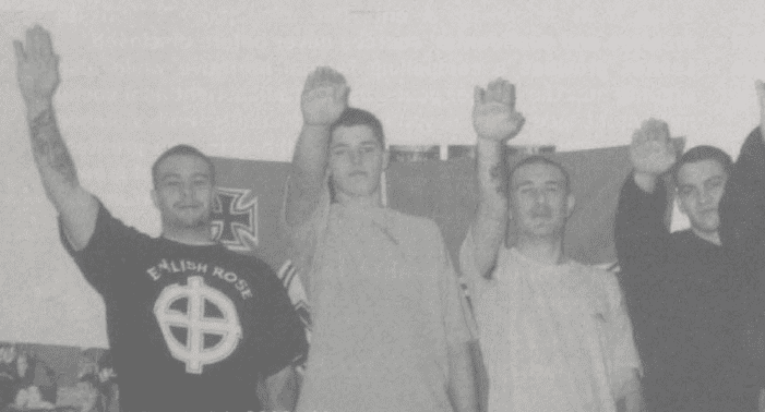 Photographed with Curson directly confronting police lines at The Bell was Lance Wright, a former neo-nazi Blood and Honour activist.