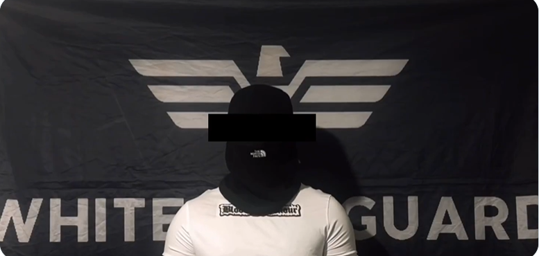 The rather sinister, masked gentleman in the top photo, his voice distorted, appeared in the White Vanguard X feed denouncing “Zionist spies, playing the role of nationalist heroes” who have infiltrated the “nationalist sphere”.