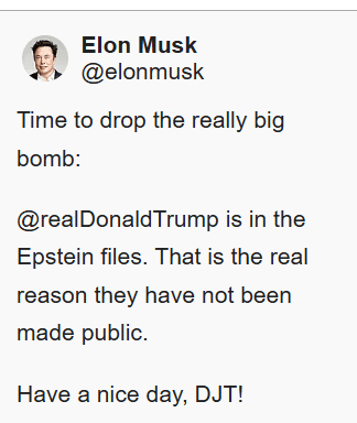 And, according to Elon Musk, lashing out after his recent falling out with the President, Donald Trump’s name is on the list.