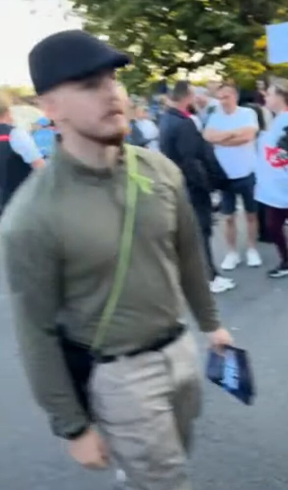 A few days ago he was also present at one of the race riots in Epping, handing out leaflets for White Vanguard.