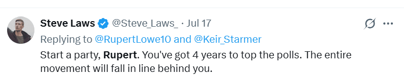 Both Wilkes and Laws have recently been posting in praise of Rupert Lowe, the far right MP and refugee from Reform, which was not right wing enough for his liking.