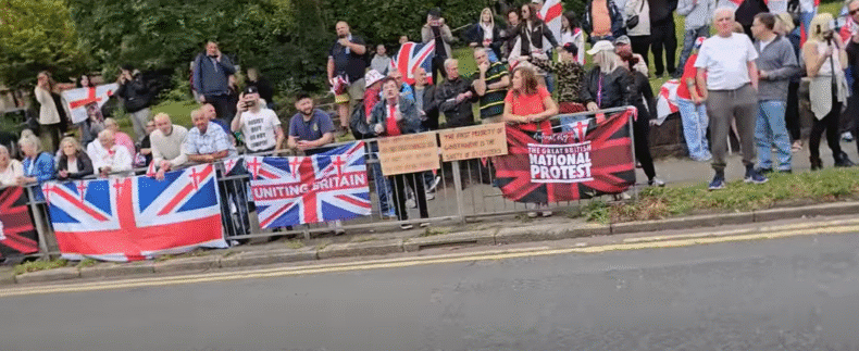 He has now resorted to pretending that GBNP is behind the various racist anti-migrant demonstrations that are being called around the country. He turned up at one such demonstration outside a hotel in Altrincham last weekend.