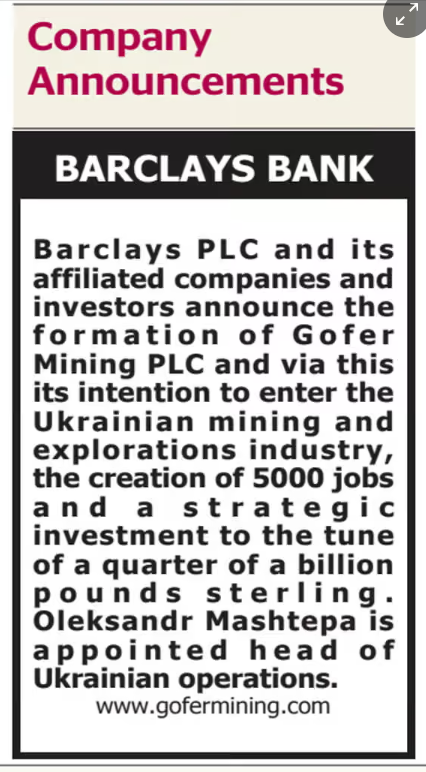 Via Gofer, the Kolpidi family set out to hijack the privatisation of this mine by the Ukrainian government and prevent its sale to a genuine company, Avellana plc.