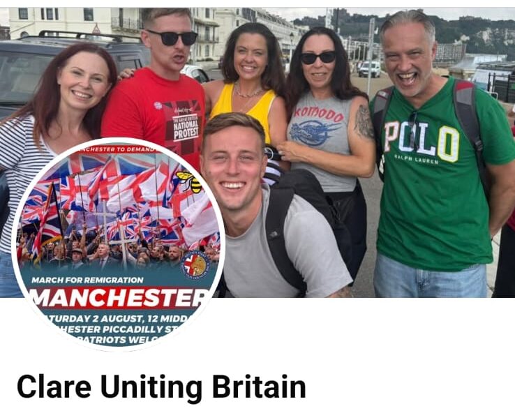 Ashlea Simon and Paul Golding also attended the previous events and it seemed as if ‘Clare Uniting Britain’ and Britain First were working closely together. Clare recently incorporated a plug for the BF Manchester ‘remigration’ demo into her online profile.