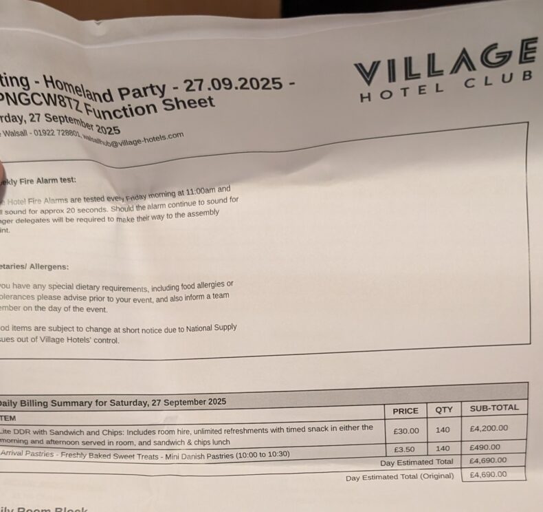 They had hoped to keep the venue secret but Searchlight was able to reveal, a few hours before they opened the doors, that the meeting was being held at the Village Hotel in Walsall.