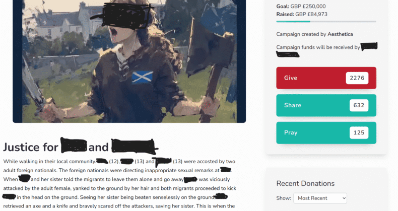 According to the hastily created appeal on a givesendgo crowdfunding page set up for the benefit of the mother of two of them, three youngsters aged 12 and 13 had been brutally assaulted by “two foreign nationals,” one male one female, having had “inappropriate sexual remarks” directed towards them.