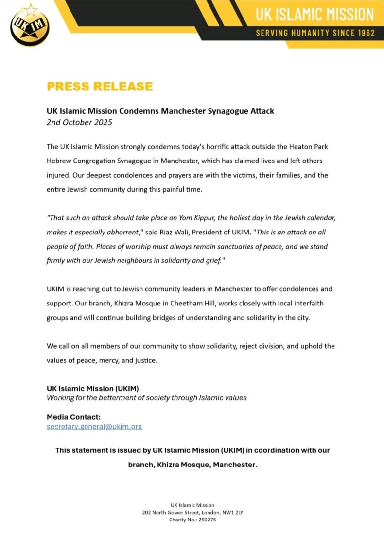 “The news from Manchester regarding the terrorist attack targeting a Jewish synagogue has been a profound shock to us.