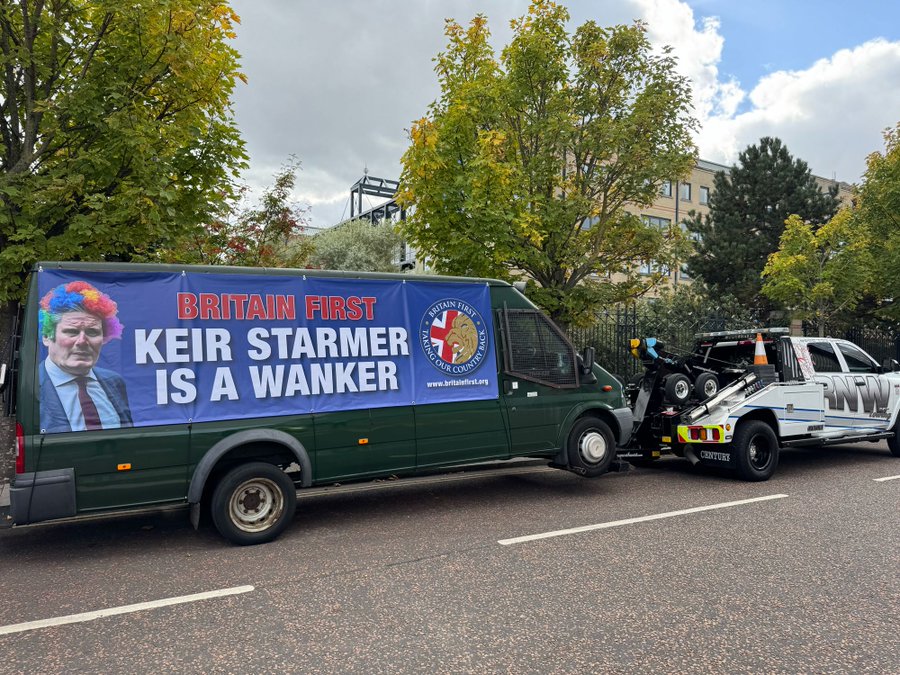 Well, there are really only two possible explanations: either Paul Golding is even more stupid than he looks, or (more likely) with the warning from GMP ringing in his ears he engineered this quite deliberately, knowing the van would be seized, so that he could plead the free speech victim. Again.